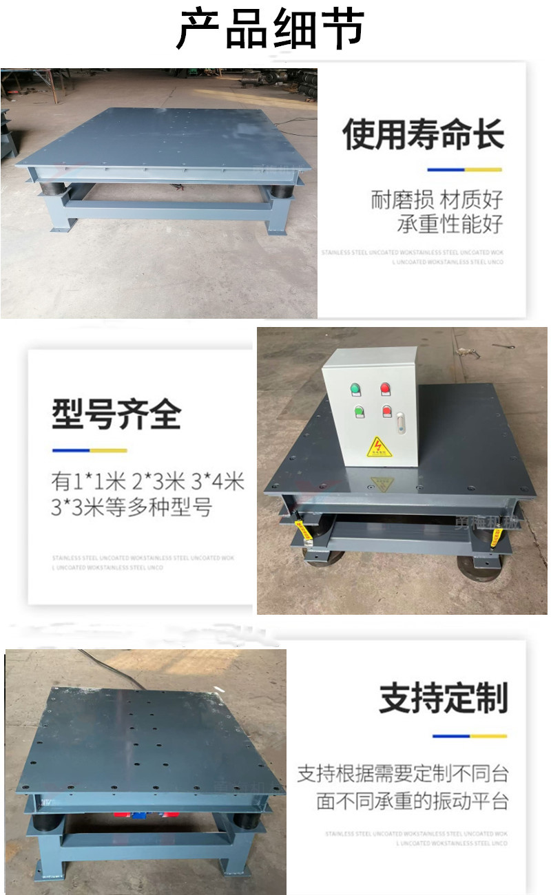 重量輕體積小水泥變頻振動(dòng)平臺(tái) 磁力振動(dòng)臺(tái)在工業(yè)生產(chǎn)中的核心價(jià)值是通過可控振動(dòng)實(shí)現(xiàn)物料密實(shí)I77l99582l9、篩選分級(jí)、輸送輔助、混合均勻等功能,其應(yīng)用場(chǎng)景覆蓋多個(gè)行業(yè),振動(dòng)平臺(tái)主要由支架、臺(tái)面、振動(dòng)機(jī)構(gòu)、減震機(jī)構(gòu)四部分組成。振動(dòng)機(jī)構(gòu)由若干臺(tái)振動(dòng)電機(jī)、傳動(dòng)板構(gòu)成,振動(dòng)電機(jī)數(shù)量一般為偶數(shù)。減震機(jī)構(gòu)主要由減震彈簧組成,包括橡膠彈簧、復(fù)合彈簧、充氣彈簧等。