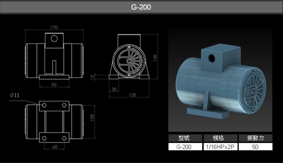 G-200 臥式振動電機 2 Pole-G系列 G-200振動馬達