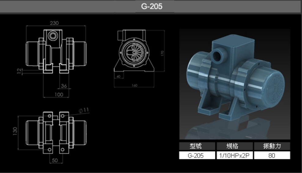 G-205 臥式振動電機 2 Pole-G系列 G-205振動馬達