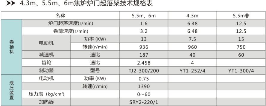 爐門起落機構(gòu)(≤6m焦?fàn)t用):用于檢修機側(cè)或焦側(cè)爐門、爐門襯磚、爐門刀邊用。每套焦?fàn)t用2-4套;依靠卷揚機或者液壓驅(qū)動。我公司有多種規(guī)格型號產(chǎn)品,可訂貨也可按照用戶圖紙或方案制造。