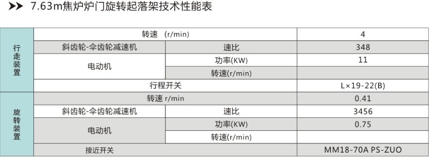 爐門旋轉(zhuǎn)起落機構(gòu)(7.63m和7.0m焦?fàn)t用):用于同“爐門起落機構(gòu)”。每套焦?fàn)t用1-2套,依靠電機、減速機驅(qū)動。