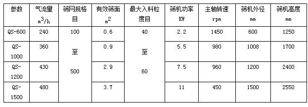 QS型氣流篩分機(jī)(氣流篩)技術(shù)參數(shù)表: