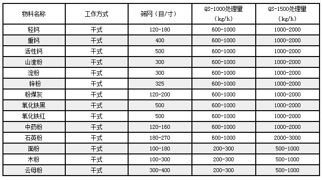 QS型氣流篩分機(jī)(氣流篩)應(yīng)用實(shí)例表:
