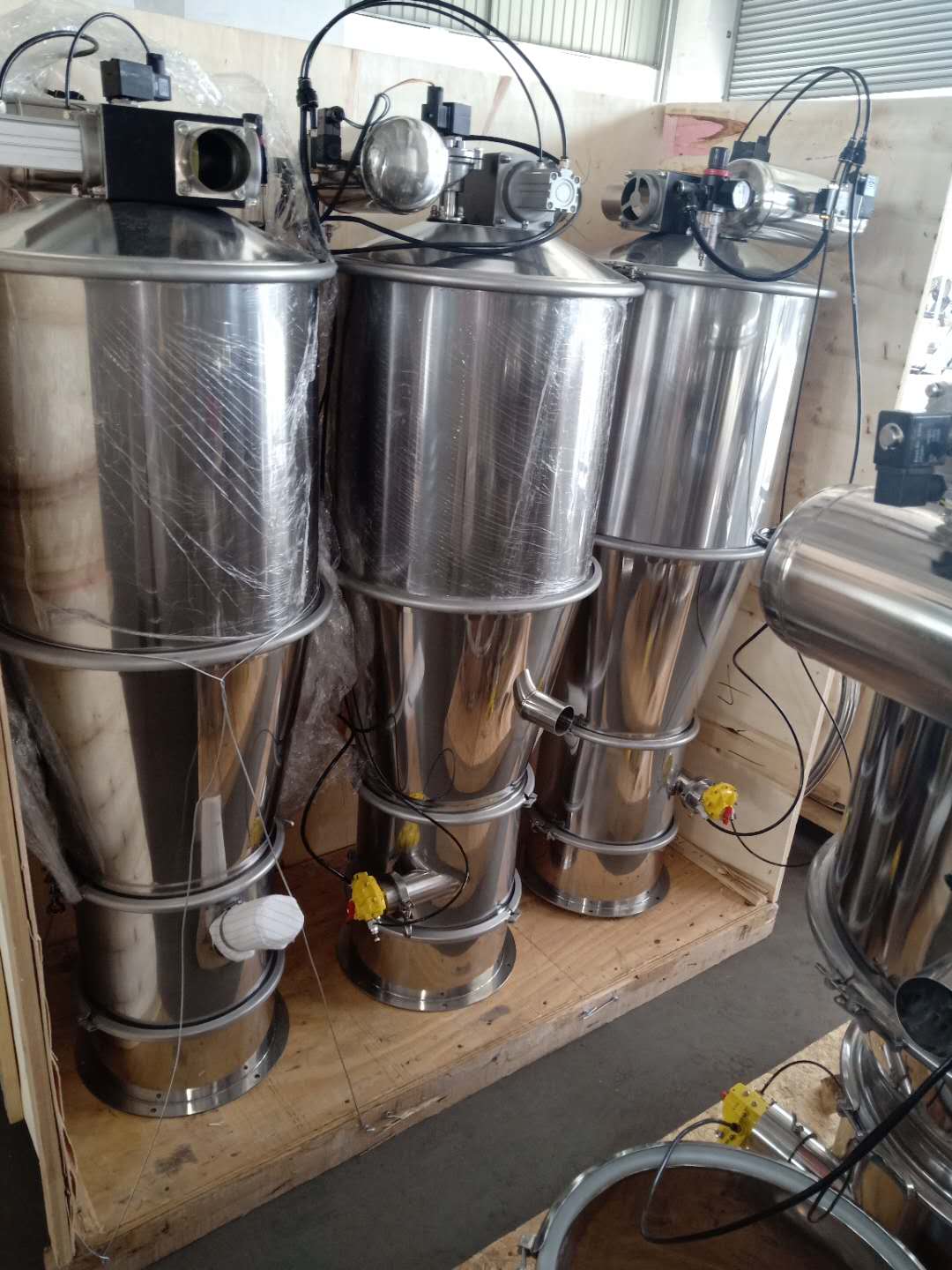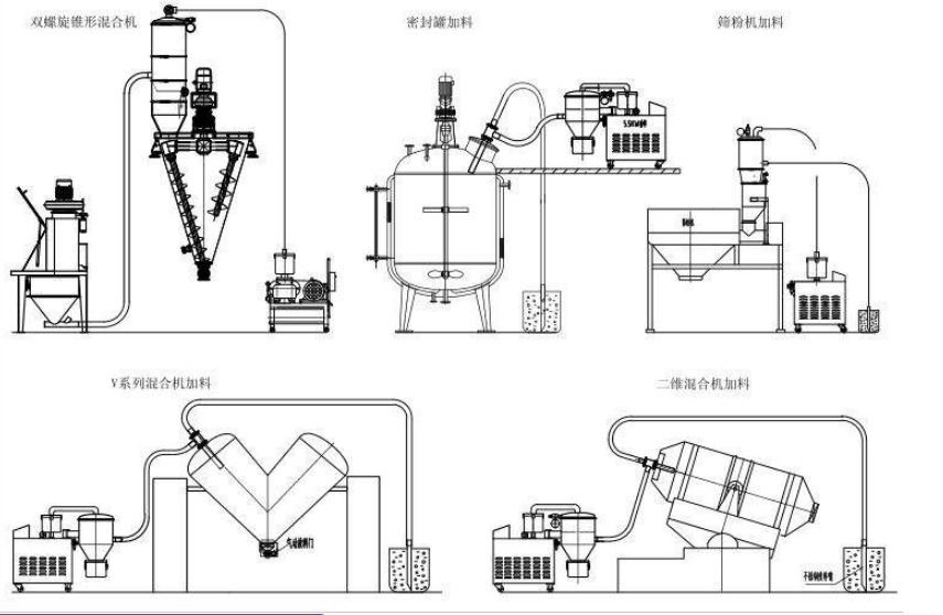 真空加料機(jī)是利用電動(dòng)真空泵作為真空源的一種真空輸送機(jī),利用該真空加料機(jī)可以將物料從容器中直接送入混合機(jī)、反應(yīng)器、料斗、壓片機(jī)、包裝機(jī)、振動(dòng)篩、整粒機(jī)、濕法制粒機(jī)、干法制粒機(jī)和粉碎機(jī)中去。該機(jī)減輕了工人的勞動(dòng)強(qiáng)度,杜絕了粉塵污染,保證生產(chǎn)符合“GMP”要求。