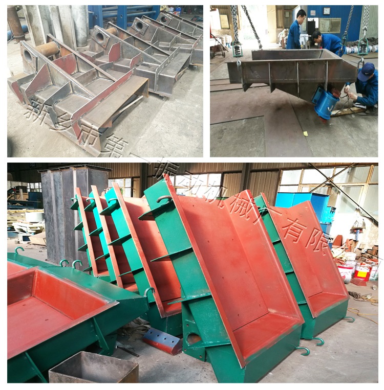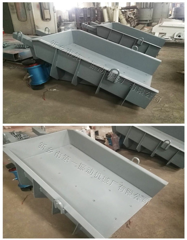 電機(jī)振動(dòng)給料機(jī)是利用特制的振動(dòng)電機(jī)或兩臺(tái)電動(dòng)機(jī)帶動(dòng)激振器驅(qū)動(dòng)給料槽沿傾斜方向作周期直線往復(fù)振動(dòng)來實(shí)現(xiàn)的。當(dāng)給料槽振動(dòng)的加速度垂直分量大于重力加速度時(shí),槽中的料被拋起,并按照拋物線的軌跡向前跳躍運(yùn)動(dòng),拋起和下落在瞬間完成,由于激振源的連續(xù)激振,給料槽連續(xù)振動(dòng),槽中的煤連續(xù)向前跳躍,以達(dá)到給料的目的。