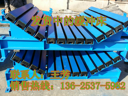 高耐磨緩沖床是由一定數(shù)量緩沖條按照一定力學(xué)分布縱向排列而成的。緩沖條表面材料摩擦系數(shù)小、耐磨性好、橡膠彈性高吸收沖擊能量強(qiáng)、獨(dú)特鋼結(jié)構(gòu)設(shè)計(jì)。阻燃緩沖條接觸面的兩端成弧形,有效地保證了輸送帶的平滑運(yùn)行。獨(dú)特的配方和施工工藝確保了緩沖條表層和橡膠的粘接強(qiáng)度。