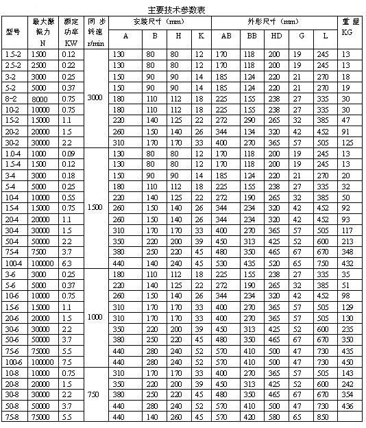 ZYU振動電機數據圖: