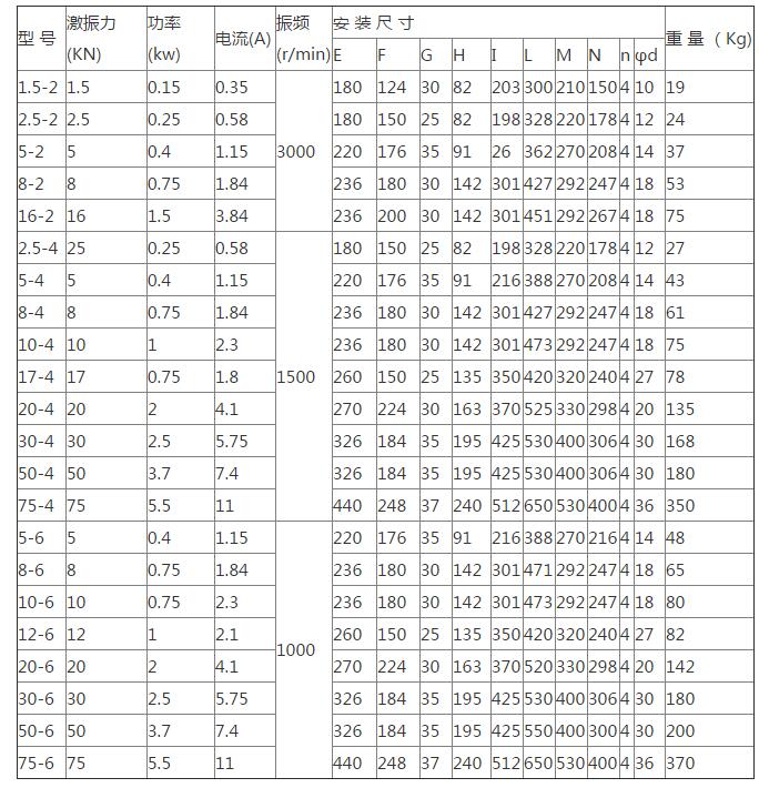 YZO振動電機技術參數