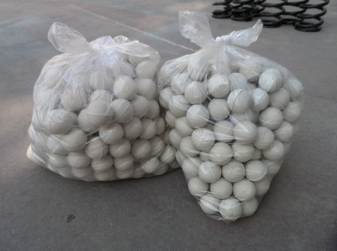 由此可看出,振動篩彈跳球的作用非常重要,可以有效的提高振動篩分設備的工作效率,彈跳球常見的材質(zhì)包括天然橡膠、硅膠、聚氨酯等,其中橡膠彈跳球適用于一般物料篩分過程,硅膠彈跳球因具有彈性好、耐磨、耐高溫、不易脫落等特點,所以主要適用于食品、醫(yī)藥、化工等行業(yè)對衛(wèi)生條件要求較高的物料篩分過程,而聚氨酯彈跳球通常應用于礦用振動篩分設備上,其耐磨程度是硅膠彈跳球、橡膠彈跳球的2-3倍。