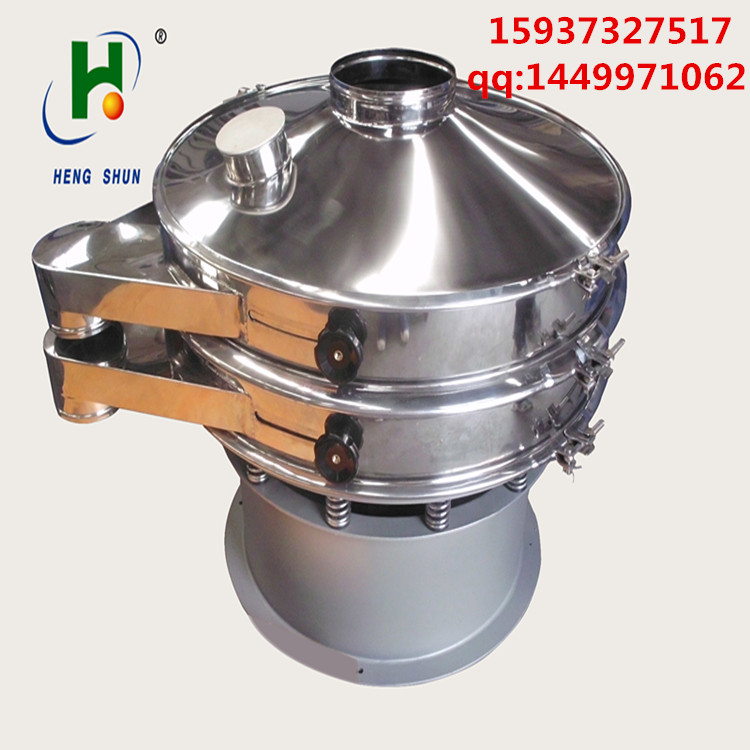 振動篩是一種高精度細粉篩分機械,工作原理是由直立式電機作激振源,電機上、下兩端安裝有偏心重錘,將電機的旋轉運動轉變?yōu)樗?、垂直、傾斜的三次元運動,再把這個運動傳遞給篩面。調節(jié)上、下兩端的相位角,可以改變物料在篩面上的運動軌跡,由于其的這種振動運轉原理,“三次元振動篩分過濾機”的名稱由此而來,又根據其外形結構也被部分客戶稱呼為圓形篩,從材質上分標準型旋振篩和普通型旋振篩的,標準型的與物料接觸部分為304不銹鋼材質,底座為碳鋼材質,普通型的通體為普碳鋼材質。