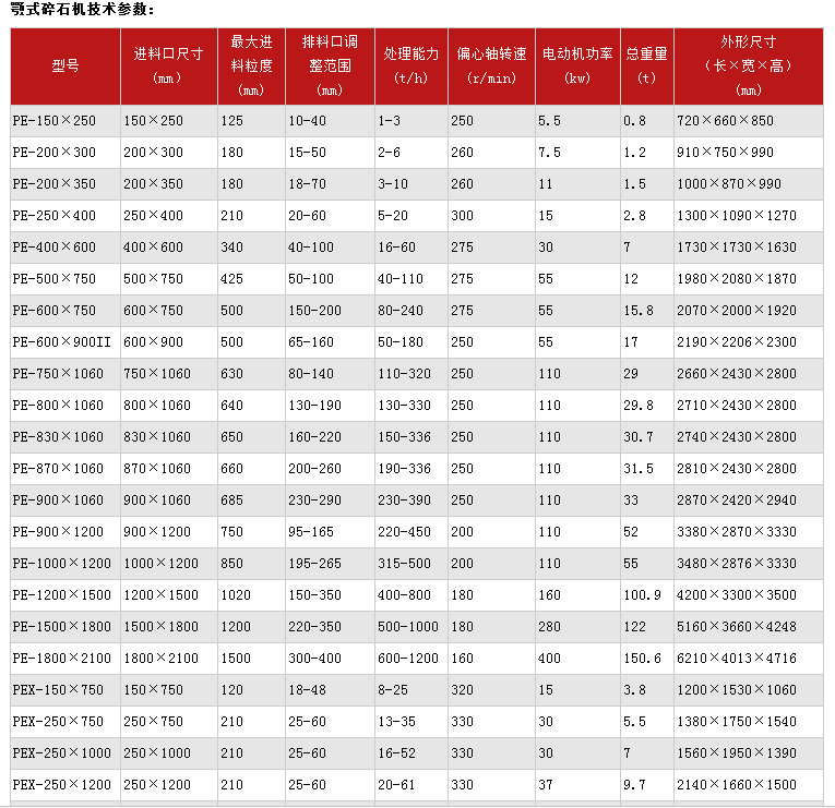 電動(dòng)機(jī)驅(qū)動(dòng)皮帶和皮帶輪,通過偏心軸使動(dòng)顎上下運(yùn)動(dòng),當(dāng)動(dòng)顎上升時(shí)肘板和動(dòng)顎間夾角變大,從而推動(dòng)動(dòng)顎板向定顎板靠近,此時(shí)被破碎的物料被擠壓、搓、碾等多重受力而被破碎。當(dāng)動(dòng)顎下行時(shí),肘板和動(dòng)顎間夾角變小,動(dòng)顎板在拉桿、彈簧的作用下與定顎板的間距拉大,此時(shí)被破碎的物料從破碎腔出料口排出,隨著偏心軸的連續(xù)運(yùn)轉(zhuǎn),動(dòng)顎作周期性的往復(fù)運(yùn)動(dòng),進(jìn)入破碎腔的物料不斷地被破碎、排出,實(shí)現(xiàn)連續(xù)生產(chǎn)。
