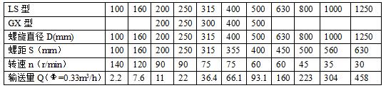LS型螺旋輸送機(jī)主要技術(shù)參數(shù)