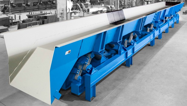 ③慣性式。由偏心塊、主軸、料槽等組成,偏心塊旋轉(zhuǎn)時產(chǎn)生的離心慣性力激起料槽振動。一般采用中等頻率和振幅。