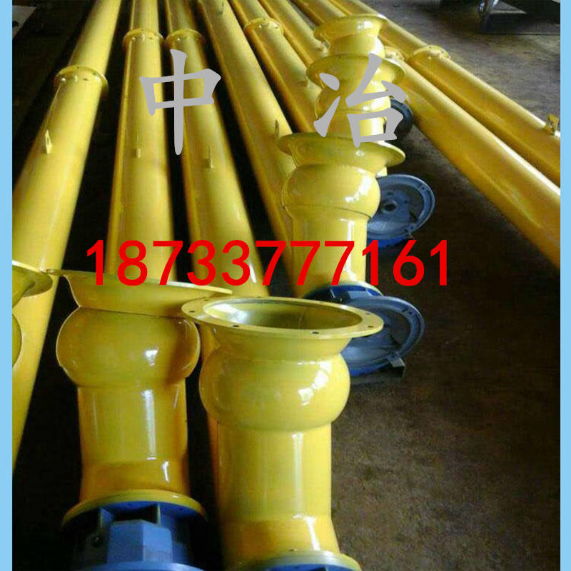 是利用旋轉(zhuǎn)的螺旋將被輸送的物料沿固定的機(jī)殼內(nèi)推移而進(jìn)行輸送工作,頭部及尾部軸承移至殼體外,吊軸承采用滑動(dòng)軸承設(shè)有防塵密封裝置,軸瓦一般采用粉末冶金,輸送水泥采用毛氈軸瓦,吊軸和螺旋軸采用滑塊連接.