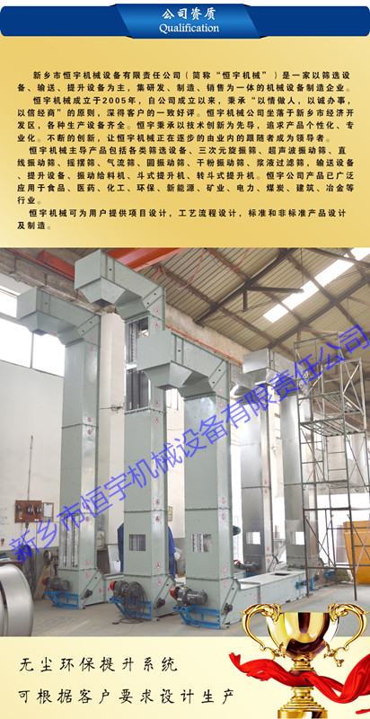 其它常用名:轉斗式提升機,種子提升機,糧食提升機,Z型提升機,Z型上料機,Z型斗提機,C型提升機,C型上料機,C型斗提機,無破碎提升機,零破碎提升機,多點上料提升機,多點下料提升機,包裝機配套提升機,色選機配套提升機等等。