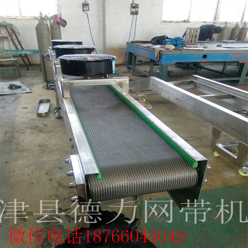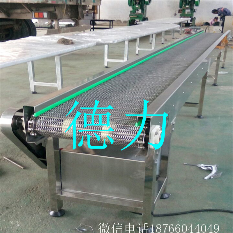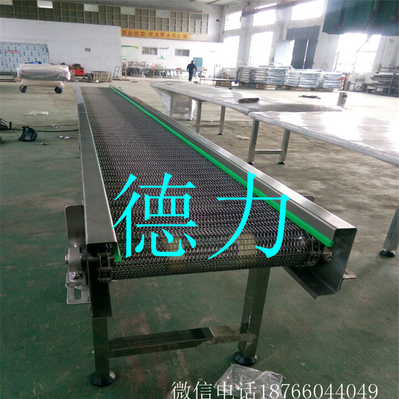 網(wǎng)帶輸送機輸送鏈是由牽引鏈、承載鏈和正向搭接(或反向搭接)的料斗組成,三部分可自由裝卸。