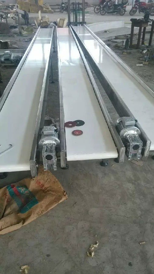 爬坡皮帶輸送機適用于樓層或高差間的貨物的連續(xù)輸送。傾斜角度小(≤30°)的爬坡皮帶機,在皮帶上加裝檔條、治具、裙邊等方式從而使物體能在較大的角度上作提升輸送。具有效率高、輸送快、噪音低、不間斷等特點。特別適合小物料的輸送,如食品、注塑件、粉末以及各種零件行業(yè)。用于上下樓層、斜坡地形、天橋等具有高差的平面之間的物品輸送。在某些情況下可以代替升降機使用。在輸送顆粒狀物品時為防止物品因重力滾落,每隔一段距離可以加一塊擋板.