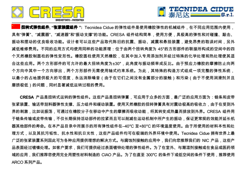 1. CRESA 鏈條和皮帶張緊器