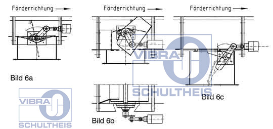 根據(jù)不同的運(yùn)行條件配備標(biāo)準(zhǔn)化的擋板和閘閥用于排料裝置。圖6a-c描繪了多種擋板形式。圖6a的擋板形式適合于粒子物料,無塵工礦。