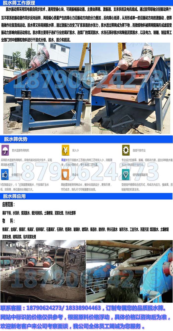 脫水篩,主要作用是脫水、脫泥、脫介,可用于砂石料廠水洗砂、選煤廠煤泥回收、選礦廠尾礦干排等,因此也叫砂石脫水篩、礦用脫水篩、煤泥脫水篩、尾礦干排篩、高頻脫水篩等。