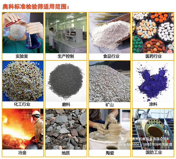 新鄉(xiāng)奧科超聲波標(biāo)準(zhǔn)檢驗(yàn)篩適用篩分檢測(cè)物料: