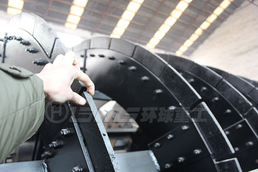 洗砂機(jī)的工作原理很簡(jiǎn)單,由電動(dòng)機(jī)通過(guò)一系列裝置帶動(dòng)葉輪轉(zhuǎn)動(dòng),砂石骨料由給料槽送入洗槽中,由葉輪的轉(zhuǎn)動(dòng)下,帶動(dòng)砂石翻動(dòng),并相互間產(chǎn)生激烈摩擦,從而完成洗選工作,干凈的砂石產(chǎn)品由葉輪帶走送到出料槽。在這個(gè)洗選過(guò)程中電動(dòng)機(jī)起到核心作用,葉輪則起著主要作用,葉輪維護(hù)是項(xiàng)很重要的工作。葉輪在洗砂機(jī)部件中比較重要的,同時(shí)也是洗砂機(jī)較脆弱的一個(gè)部位,因?yàn)槭鲜窃谌~輪里實(shí)現(xiàn)洗選輸送的,砂石的沖擊、摩擦很容易造成葉輪的磨損甚至損壞。洗砂機(jī)葉輪基本都是安置在主軸上端的軸頭上,用圓錐套和鍵連接通報(bào)鈕距,從而高速扭轉(zhuǎn),而物料由葉輪上部入料器的中間入料管進(jìn)入葉輪的中洗砂機(jī)生產(chǎn)線間。由葉輪中間的布料錐體將物料均勻的分派到葉輪的每個(gè)輸送流道,在輸送流道出口,設(shè)置有特殊質(zhì)料制成的耐磨塊。葉輪將物料加快到洗砂機(jī)生產(chǎn)線必定速率拋射進(jìn)來(lái),打擊到渦動(dòng)破碎腔內(nèi)的物料襯層,進(jìn)行猛烈的自粉碎,在葉輪的錐帽和耐磨塊之間裝有上、下賤道板,從而庇護(hù)它不受磨損,另有一洗砂機(jī)生產(chǎn)線點(diǎn)要值得細(xì)致的便是給料也應(yīng)延續(xù)均勻,物料的規(guī)格嚴(yán)酷遵守請(qǐng)求,否則也很容易由于物料磨損葉輪。