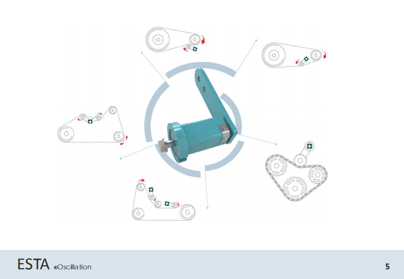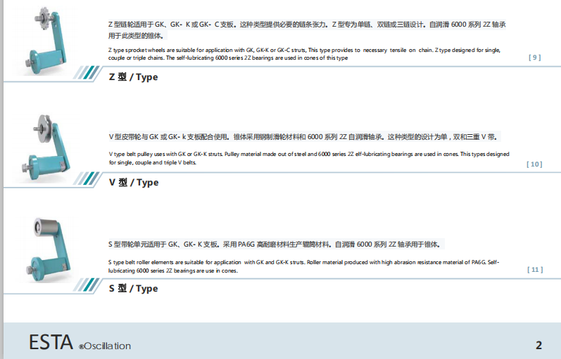在ESTA懸架組件上裝上吊桿、滾子和鏈輪,可用作為自動張緊裝置、加壓滾子、緩沖器使用