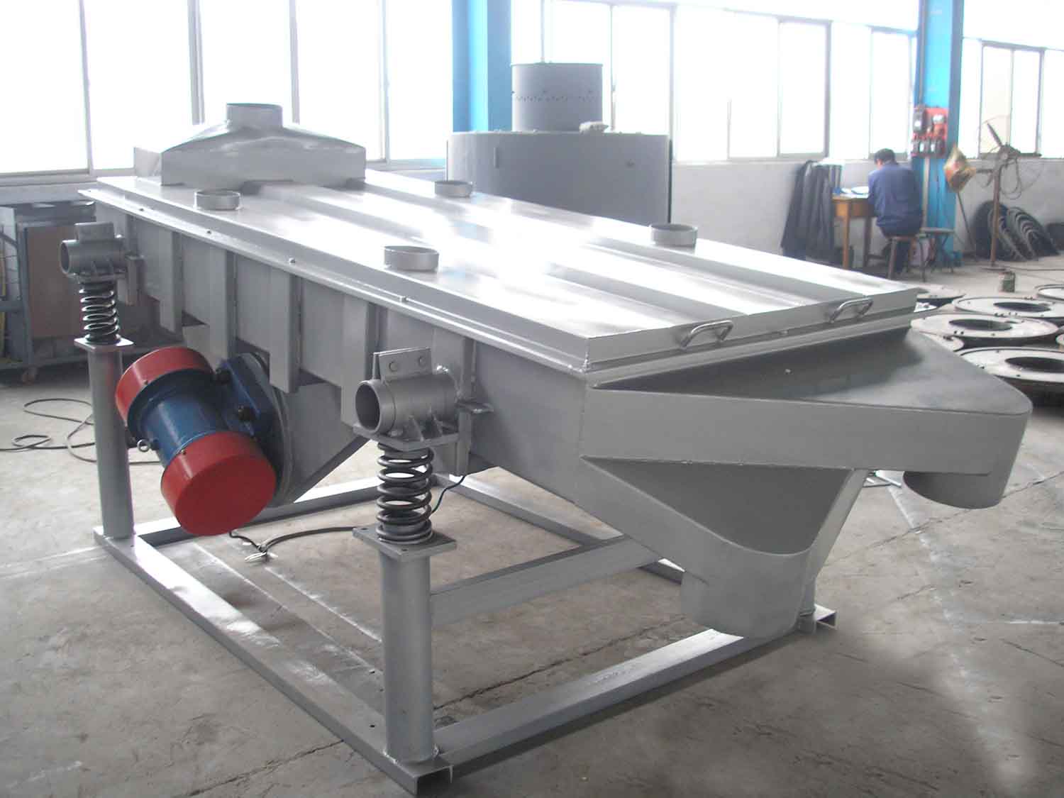 直線篩(直線振動(dòng)篩)利用振動(dòng)電機(jī)激振作為振動(dòng)源,使物料在篩網(wǎng)上被拋起,同時(shí)向前作直線運(yùn)動(dòng),物料從給料機(jī)均勻地進(jìn)入篩分機(jī)的進(jìn)料口,通過(guò)多層篩網(wǎng)產(chǎn)生數(shù)種規(guī)格的篩上物、篩下物、分別從各自的出口排出。具有耗能低、產(chǎn)量高、結(jié)構(gòu)簡(jiǎn)單、易維修、全封閉結(jié)構(gòu),無(wú)粉塵溢散,自動(dòng)排料,更適合于流水線作業(yè)。