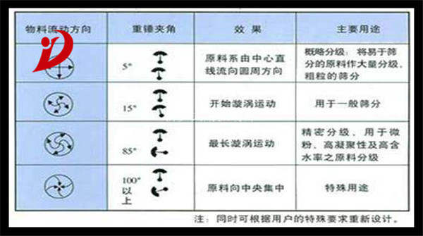 DY系列旋振篩篩的基本原理是利用電機(jī)軸上下安裝的重錘(不平衡重錘),將電機(jī)的旋轉(zhuǎn)運(yùn)動(dòng)轉(zhuǎn)變?yōu)樗?、垂直、傾斜的三次元運(yùn)動(dòng),再把這個(gè)運(yùn)動(dòng)傳遞給篩面,使物料在篩面上做外擴(kuò)漸開線運(yùn)動(dòng),故該系列振動(dòng)篩稱之為旋振動(dòng)篩。旋振篩具有物料運(yùn)行的軌跡長,篩面利用率高等優(yōu)點(diǎn),調(diào)節(jié)上、下兩端重錘的相位角,可改變物料在篩面上的運(yùn)動(dòng)軌跡.可以對物料進(jìn)行精篩分、概率篩分等。