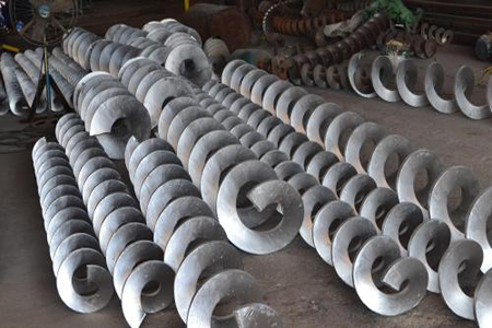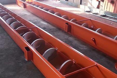 無(wú)軸螺旋輸送機(jī)在輸送原理上與一般螺旋輸送機(jī)基本相同:即如同一根旋轉(zhuǎn)的螺旋軸,帶動(dòng)一個(gè)螺母沿其軸向移動(dòng)一樣,無(wú)軸螺旋輸送機(jī)螺旋體相當(dāng)于螺旋軸,物料相當(dāng)于螺旋輸送機(jī)螺母,當(dāng)螺旋體連續(xù)旋轉(zhuǎn)時(shí)則物料也連續(xù)輸送。無(wú)軸螺旋輸送機(jī)螺旋體為較厚的帶狀葉片,通過(guò)無(wú)軸螺旋輸送機(jī)驅(qū)動(dòng)端驅(qū)動(dòng),中間無(wú)軸,螺旋體與機(jī)殼內(nèi)壁底部襯板接觸(滑動(dòng))。