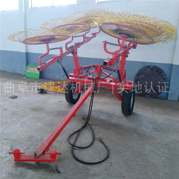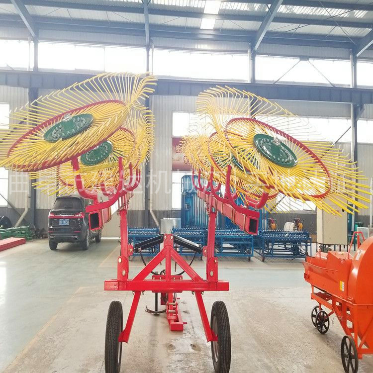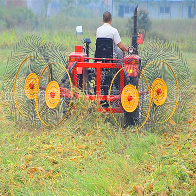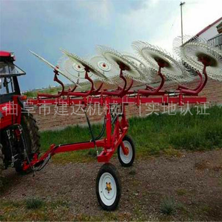 運輸時可以將指盤轉到拖拉機后方。該機結構簡單,操作方便,使用可靠,故障少,功效高,作業(yè)質量好。保養(yǎng)簡便,動力配套性能好。并且既能摟草,又可進行翻曬作業(yè)(可將摟集成條的草條重新攤開)。該機與我廠生產(chǎn)的割草機配套使用,可將割幅形成的三個草條摟集成一個均勻的草條,便于隨后的打捆作業(yè)。