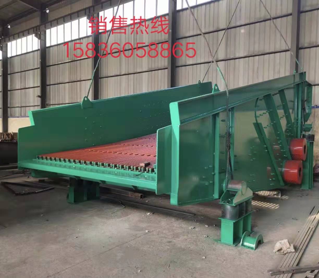 礦用篩由篩箱、振動電機(jī)、減振系統(tǒng)及底架等組成。篩箱由篩框、篩板、襯板等組成。振動電機(jī)采用高性能、高壽命的振動電機(jī)為激振源,調(diào)節(jié)振動電機(jī)激振力的大小,可以改變篩機(jī)的振幅。