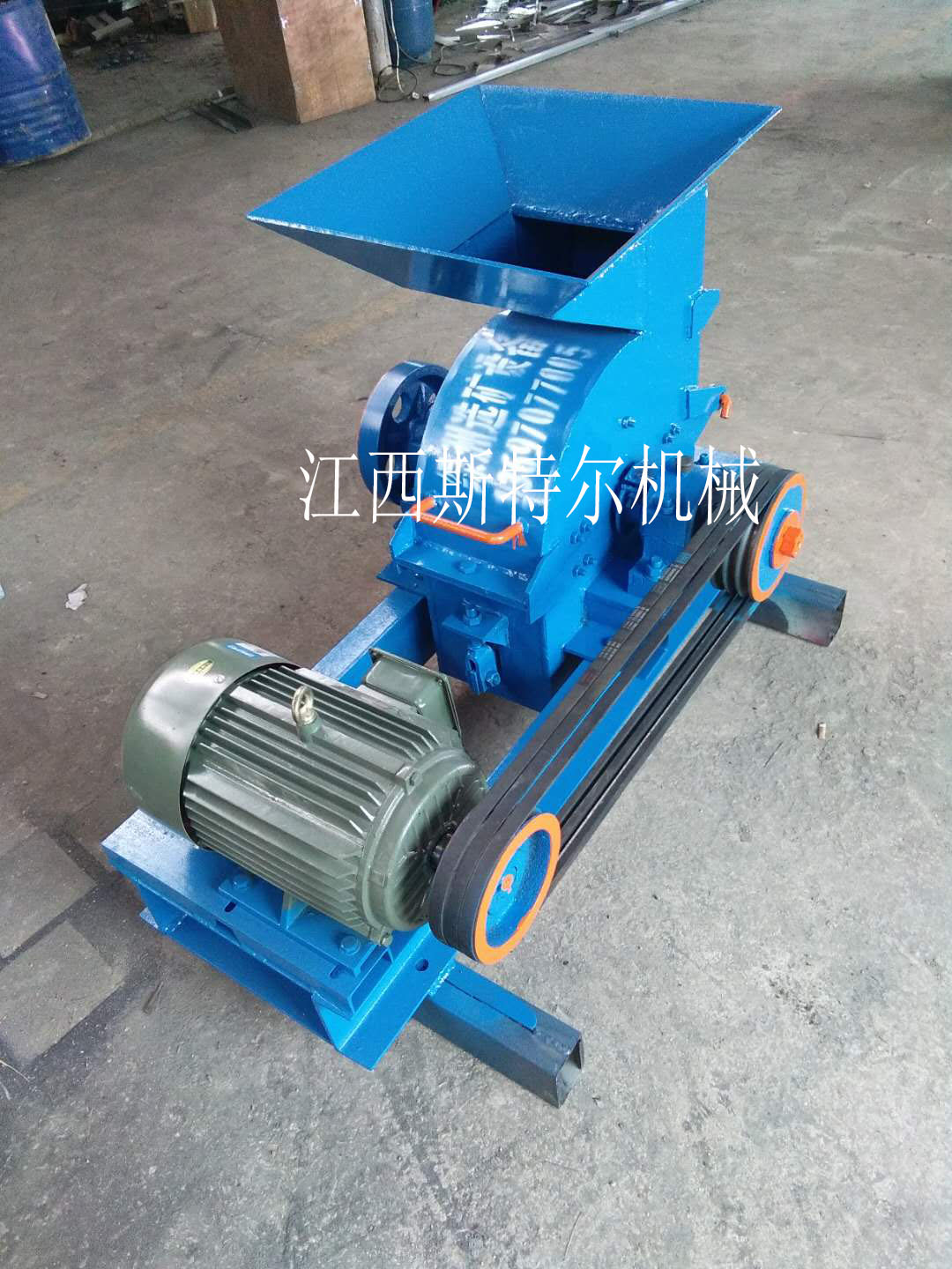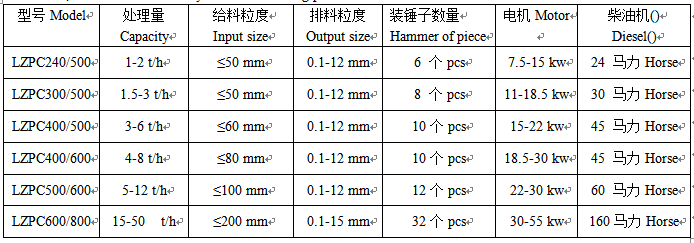 電動(dòng)機(jī)帶動(dòng)轉(zhuǎn)子在破碎腔內(nèi)高速旋轉(zhuǎn)。物料自上部給料口給入機(jī)內(nèi),受高速運(yùn)動(dòng)的錘子的打擊、沖擊、剪切、研磨作用而粉碎。在轉(zhuǎn)子下部,設(shè)有篩板、粉碎物料中小于篩孔尺寸的粒級(jí)通過篩板排出,大于篩孔尺寸的粗粒級(jí)阻留在篩板上繼續(xù)受到錘子的打擊和研磨, 然后通過篩板排出機(jī)外。
