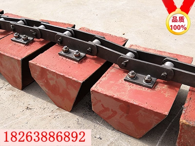 NE15斗式提升機為單排鏈樣式,鏈條為上圖的樣式,主要技術參數(shù):節(jié)距101.6mm,鏈板厚度:6mm;銷軸直徑:11.5mm,滾子直徑:26.5mm;內(nèi)節(jié)內(nèi)寬:27mm;安裝孔:40*90mm。鏈板材質:45#;銷軸套筒材質:40Cr。