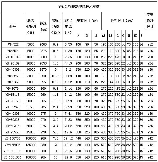VB系列振動電機(jī)技術(shù)參數(shù)圖表