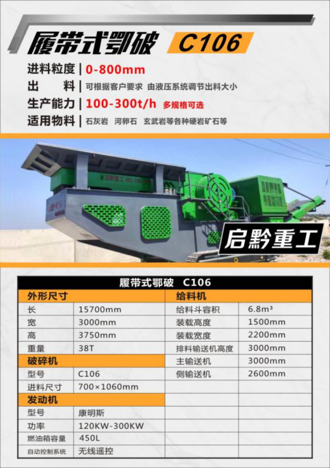 QF-C106履帶式顎破應(yīng)用于鐵路、公路、采石場、建材、化工、水電水利、冶金行業(yè)的的物料粗碎作業(yè),特別是建筑垃圾、移動石料破碎作業(yè)等領(lǐng)域。根據(jù)鄂破主機(jī)的運行壓力,振動給料機(jī)可變換給料速度,從而避免出現(xiàn)少料、空轉(zhuǎn)或涌料的情況,確保設(shè)備的穩(wěn)定、高產(chǎn)。采用油電混合動力模式或全動力驅(qū)動單元模塊幫助用戶有效突破作業(yè)現(xiàn)場固定、基礎(chǔ)建設(shè)成本高、長途倒運麻煩的重重掣肘,實現(xiàn)全工況、全天候、快捷、低成本作業(yè)的模塊化移動破碎設(shè)備。專門配備除塵噴水系統(tǒng),加上針對移動作業(yè)優(yōu)化設(shè)計的反擊破結(jié)合預(yù)篩分振動篩,可用作一級和二級破碎,用于建筑垃圾和各類中軟硬度的石料、礦石的破碎作業(yè),整機(jī)各個模塊緊湊高效、快速移動入場作業(yè)、轉(zhuǎn)場快捷便利。