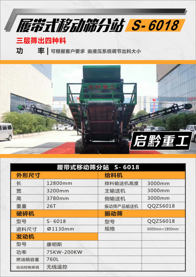 QF-6018移動式的分站有三層篩網(wǎng),可選出四種規(guī)格的合格料,并配備有一個細(xì)料產(chǎn)品膠帶機(jī)和三個側(cè)膠帶機(jī),所有膠帶機(jī)均可壓折,可整體運(yùn)輸。投制系統(tǒng)和動力強(qiáng)勁的康明斯柴由發(fā)動機(jī),使其成為各種精細(xì)分類分工藝流理中的理想設(shè)備新型發(fā)動機(jī)在優(yōu)秀的液壓系統(tǒng)的輔助下,對實現(xiàn)較油效率,同時便于維護(hù)保養(yǎng)。自動控制系統(tǒng)可一鍵式啟動,并可使主機(jī)與其系列破碎篩分站進(jìn)行聯(lián)鎖可互換篩網(wǎng)不僅能夠快速應(yīng)不同途,現(xiàn)場更換也十分便捷,并可節(jié)省庫存成本,維修平臺為標(biāo)準(zhǔn)配置,可提高維護(hù)保養(yǎng)的安全性。高品質(zhì)組造工藝,可保無故障運(yùn)行。利用無線遙控可調(diào)整分機(jī)的配置 滿足您的特定需求,包括與其他破碎篩分站聯(lián)合作業(yè)的團(tuán)結(jié)作業(yè)
