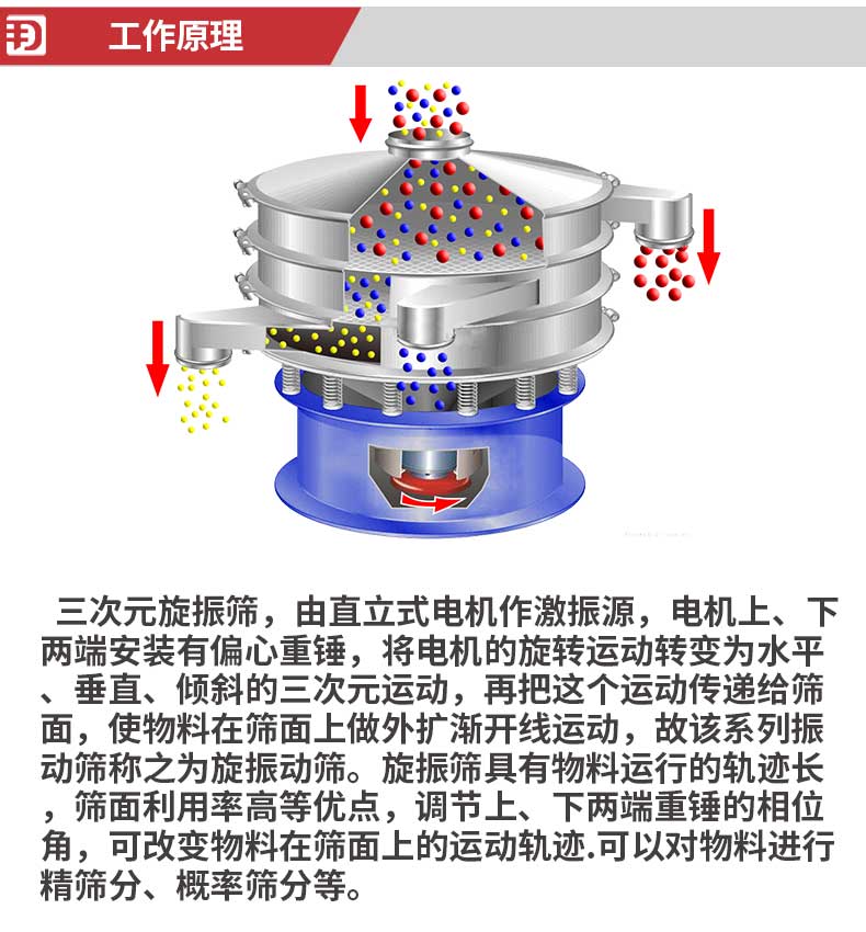 不銹鋼旋振篩是一種通用的振動篩分、過濾設(shè)備,在粉體、小顆粒以及液體物料的生產(chǎn)加工中都有著良好的應(yīng)用。該系列旋振篩根據(jù)不同的應(yīng)用分為普通型、閘門型、加緣型以及超聲波型等。普通型旋振篩主要針對普通粉體、小顆粒物料的篩分作業(yè);閘門型旋振篩是在實際應(yīng)用中衍生的一種產(chǎn)品,多用于超輕、超細(xì)物料的篩分,用戶可以一次投料有效篩分作業(yè),通過控制閘門的開合以達(dá)到良好篩分的目的,這種篩分作業(yè)多用于中藥粉、花粉等行業(yè);加緣型旋振篩是在普通型旋振篩的基礎(chǔ)上增大入料口,并通過特殊角度設(shè)計以防止液體飛濺的過濾型篩分設(shè)備,在油漆、水過濾、紙漿過濾等行業(yè)有著廣泛的應(yīng)用。