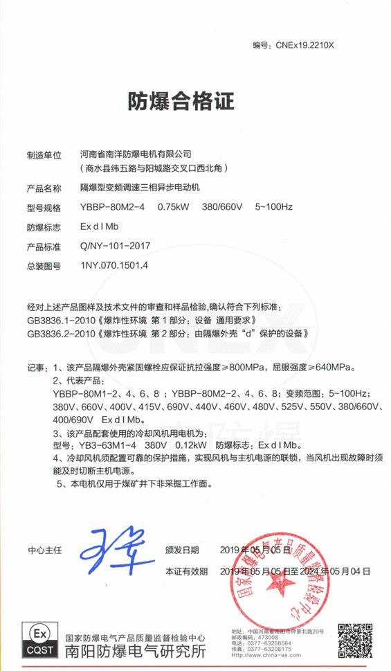 YBBP系列隔爆型變頻調(diào)速三相異步電動機,是我公司根據(jù)市場需求而開發(fā)的新產(chǎn)品,與變頻器配合使用,可以實現(xiàn)較寬范圍內(nèi)平滑無級調(diào)速,調(diào)速范圍、動態(tài)響應(yīng)、調(diào)速精度、低頻轉(zhuǎn)矩、轉(zhuǎn)差補償、功率因數(shù)、效率等方面均有很大的優(yōu)越性,是滿足煤炭、石油、化工等有爆炸性氣體混合物電動機防爆性能符合GB3868.1-2010《爆炸性環(huán)境 第1部分:設(shè)備通用要求》和GB3868.2-2010《爆炸性環(huán)境 第2部分:由隔爆外殼“d”保護的設(shè)備》的規(guī)定。