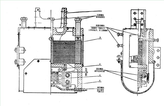 (2)彈性系統(tǒng)的調(diào)諧:本系列電振機(jī)的調(diào)諧是通過調(diào)整板彈簧組的片數(shù)來實(shí)現(xiàn)的。調(diào)諧時(shí),首先擰緊板彈簧的頂緊螺栓并松開裝配用的聯(lián)接叉定位螺栓(參看圖2)然后接通電源,調(diào)節(jié)電位器旋鈕,逐漸增加電流,同時(shí)觀察振幅指示牌所示的振幅增大,電流下降,說明板彈簧組剛度增大,應(yīng)適當(dāng)減少板彈簧片數(shù)。如果頂緊板彈簧的螺栓放松之后,振幅更加減小,則說明板彈簧組的剛度偏低,應(yīng)適當(dāng)增加板彈簧片數(shù)。如果初開車,當(dāng)電流達(dá)到額定值時(shí)振幅偏大,并超過額定值,則說明板彈簧剛度偏低,亦該適當(dāng)增強(qiáng)板彈簧片數(shù)。