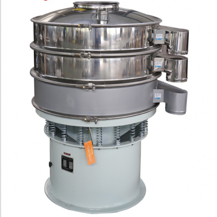 旋振篩篩是一種高精度細(xì)粉篩分機(jī)械,其噪音低、效率高,快速換網(wǎng)需3-5分鐘,全封閉結(jié)構(gòu),適用于粒、粉、粘液等物料的篩分過(guò)濾。旋振篩是由直立式電機(jī)作激振源,電機(jī)上、下兩端安裝有偏心重錘,將電機(jī)的旋轉(zhuǎn)運(yùn)動(dòng)轉(zhuǎn)變?yōu)樗?、垂直、傾斜的三次元運(yùn)動(dòng),再把這個(gè)運(yùn)動(dòng)傳遞給篩面。調(diào)節(jié)上、下兩端的相位角,可以改變物料在篩面上的運(yùn)動(dòng)軌跡。