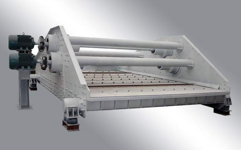 直線脫水篩采用了雙電機自同步技術,通用型偏心塊、可調振幅振動器。主要由篩箱、激振器、支承系統(tǒng)及電機組成。兩個互不聯(lián)系的振動器作同步反向運轉,兩組偏心質量產(chǎn)生的離心力沿振動方向的分力疊加,反向離心抵消,從而形成單一的沿振動方向的激振動,使篩箱做作往復直線運動。主要作用是脫水、脫泥、脫介,可用于砂石料廠水洗砂、選煤廠煤泥回收、選礦廠尾礦干排等,因此也叫振動脫水篩、礦用脫水篩、煤泥脫水篩、尾礦脫水篩、高頻脫水篩等。直線脫水篩作用于某些含泥量低的物料時也可單使用,不需要洗砂機,比如石英砂、鉀長石等。因為該類物料一般含泥量低,使用洗砂機水洗砂不但耗能而且效果不佳,很重要的是直線脫水篩比洗砂機投資成本低.