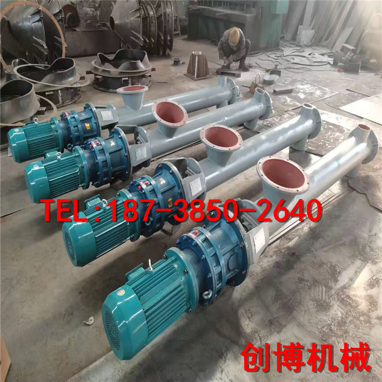 (4)LS、GX型螺旋輸送機物料出口端,應設置1/2~1圈反向螺旋片,防止粉料堵塞端部。(5)螺旋輸送機由螺旋機本體、進出料口及驅動裝置三部分組成。螺旋機本體由頭部軸承、尾部軸承、懸掛軸承、螺旋、機殼、蓋板及底座等組成。驅動裝置由電動機、減速器、聯(lián)軸器及底座所組成。
