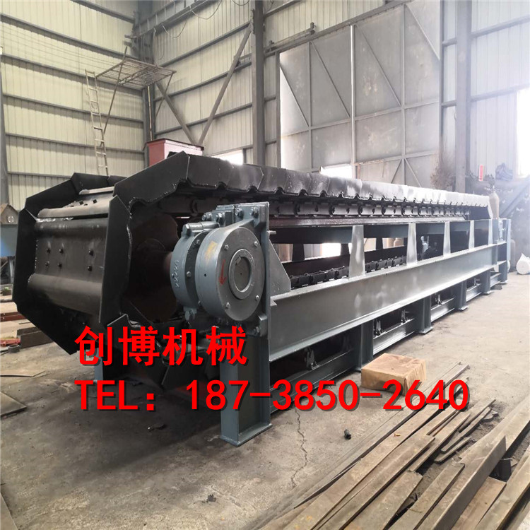 物料由位于尾部上方的儲倉內推落到輸送槽內,隨輸送槽向前運行至頭部罩殼的溜槽口卸出。