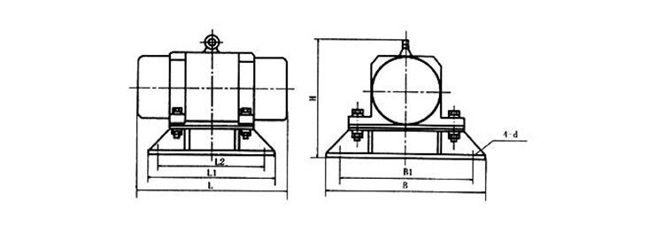 ZFB倉(cāng)壁振動(dòng)器的基本結(jié)構(gòu)為上部是YZD振動(dòng)電機(jī),下部是臺(tái)架,中間用螺栓聯(lián)結(jié)。