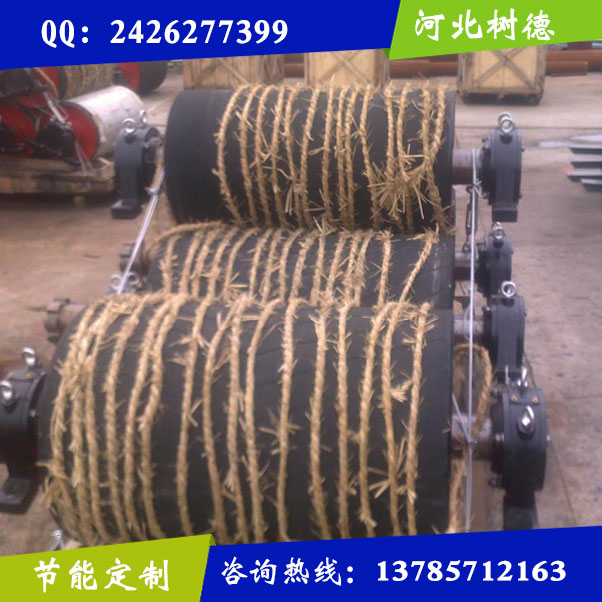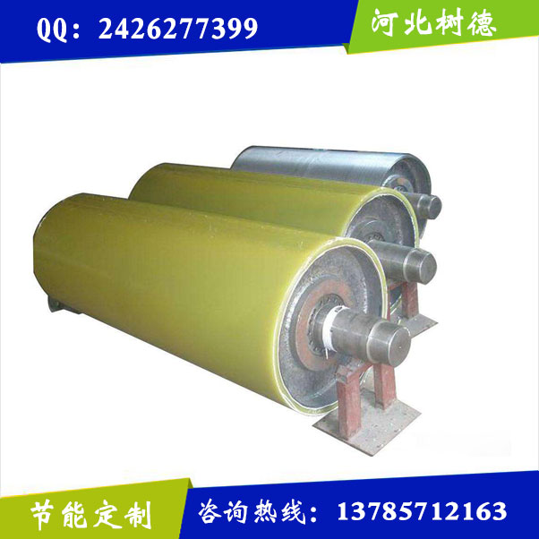 筒體多為光面或包膠。使用時候為了防止皮帶打滑和增加摩擦力,在滾筒表面進行橡膠包裹。樹德橡膠滾筒包膠厚度根據(jù)滾筒直徑一般采用以下標準:直徑小于500mm=厚度10mm;直徑500—800mm=厚度12mm;直徑大于80mm=厚度15mm。
