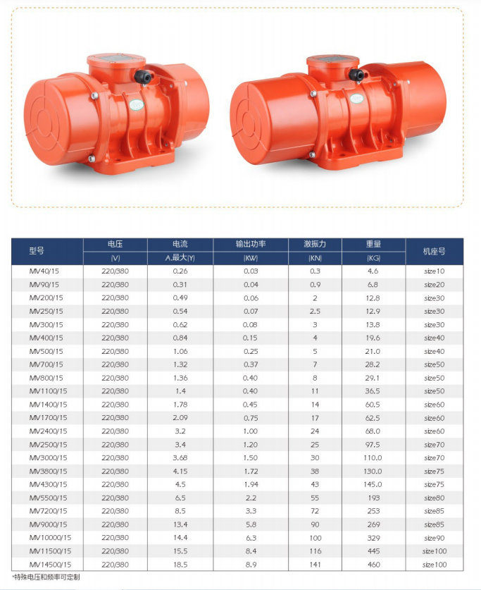 MV系列振動(dòng)電機(jī)廣泛應(yīng)用于建筑設(shè)備,下料機(jī),沙石分離器,傳送帶,振動(dòng)篩,料斗清倉(cāng)等,通過(guò)調(diào)節(jié)偏心塊的角度能達(dá)到無(wú)極調(diào)節(jié)功效。MV系列振動(dòng)電機(jī)具有體重輕、體積小、激振力調(diào)節(jié)方便、和防護(hù)等級(jí)高等特點(diǎn)。