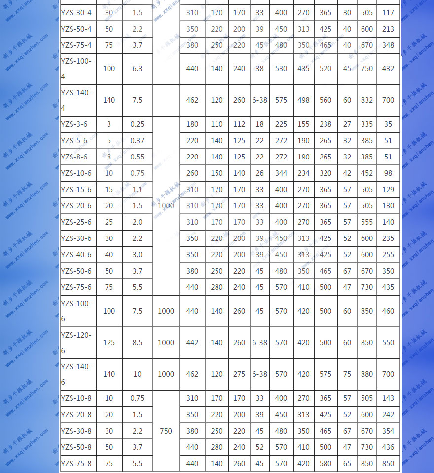 千振機(jī)械YZS振動電機(jī)技術(shù)參數(shù):