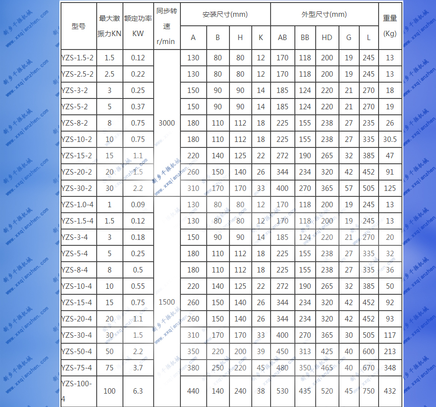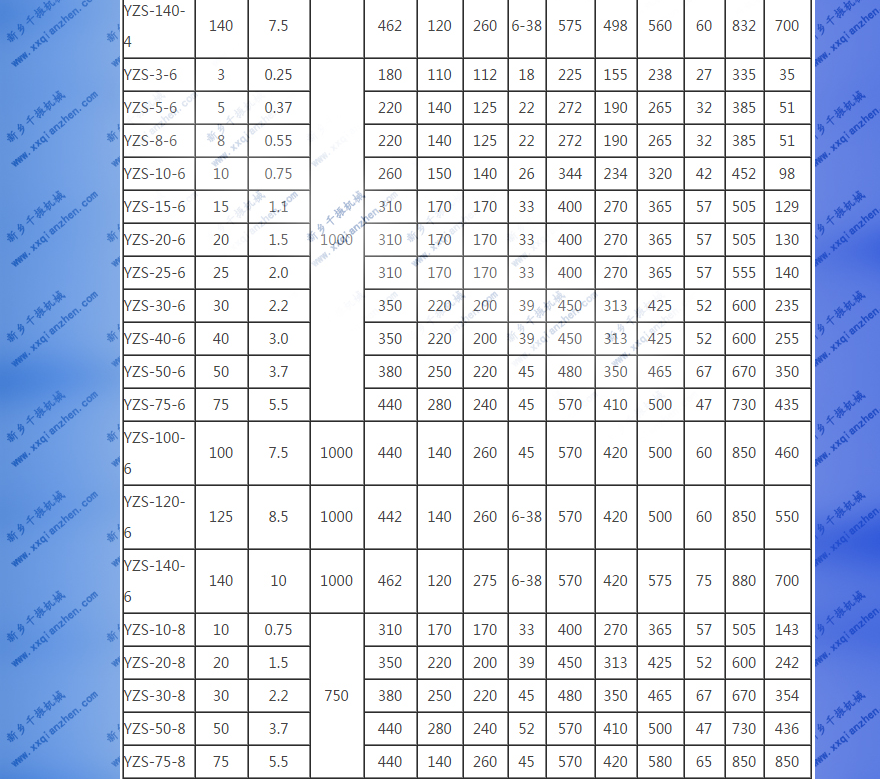 YZS振動(dòng)電機(jī)技術(shù)參數(shù):