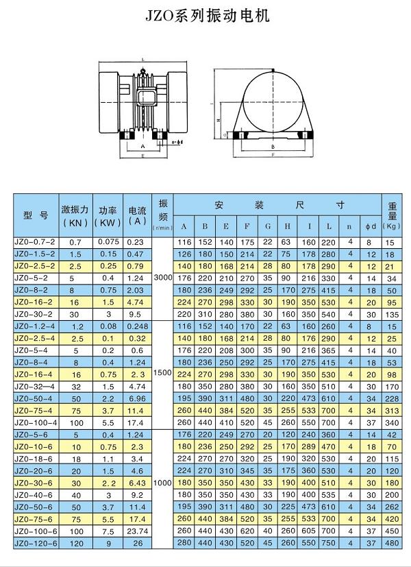 JZO系列振動電機(jī)參數(shù)對照圖: